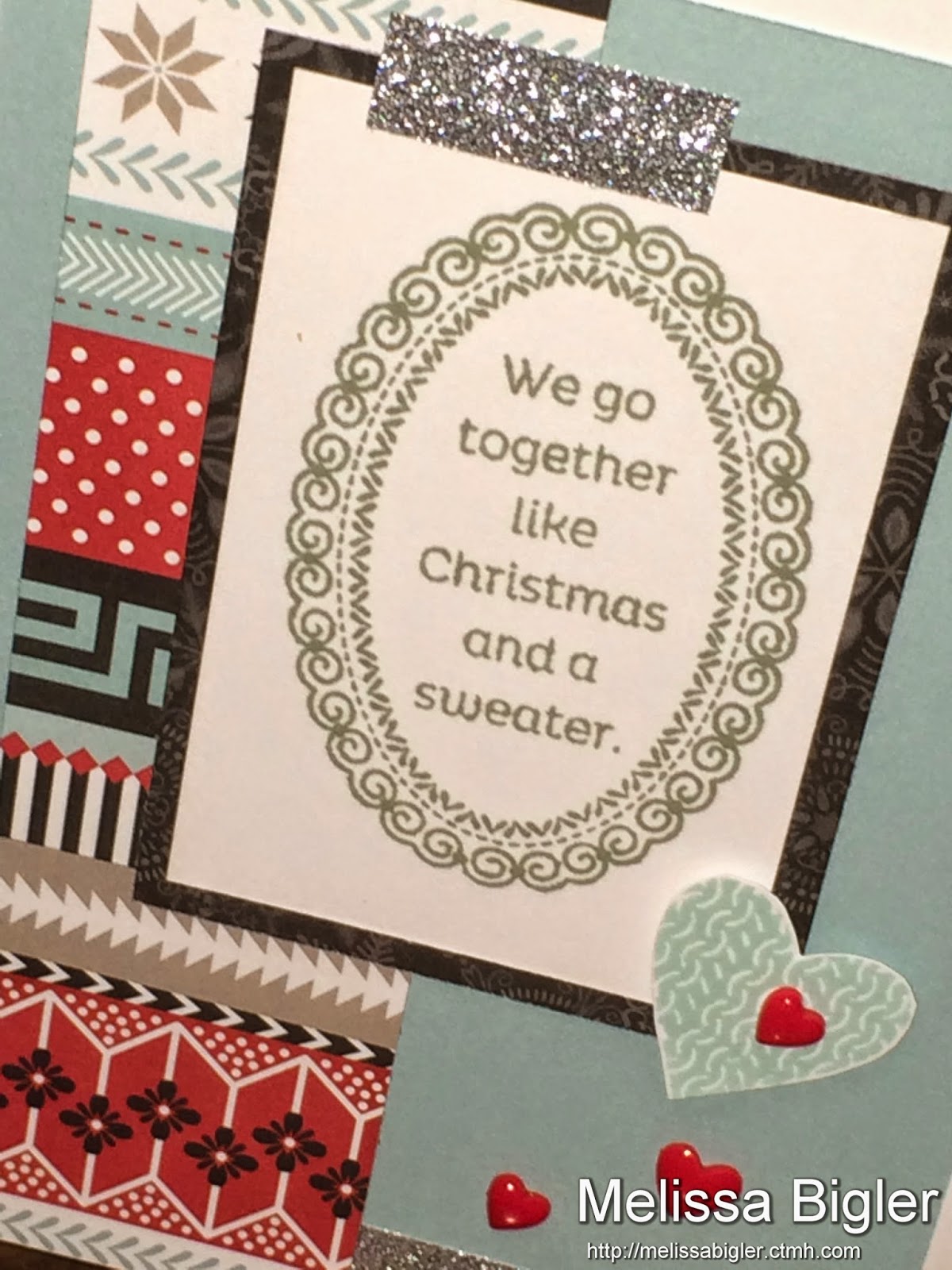 One of the things I really like about all the workshops on the go (both cardmaking and scrapbooking kits) are the leftovers once the project is complete that can be used for other projects. Of course they all come with a full size stamp set that can be used on endless projects to come but there are other goodies too. In this particular cardmaking kit there is a lot of silver shimmer trim as well as the cute little red hearts.