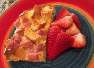 Why do I like to make breakfast the night before after just cleaning up dinner dishes? Because… it’s daylight savings night… people that know me know that this is a big adjustment for me twice a year. Since we are LOSING an hour overnight and getting the Monkey to Sunday School at 9 am is really 8 am… I need all the help I can get. (Also because I’m trying to exercise more and hope to hit a walk in the morning while this is baking away in the oven.)