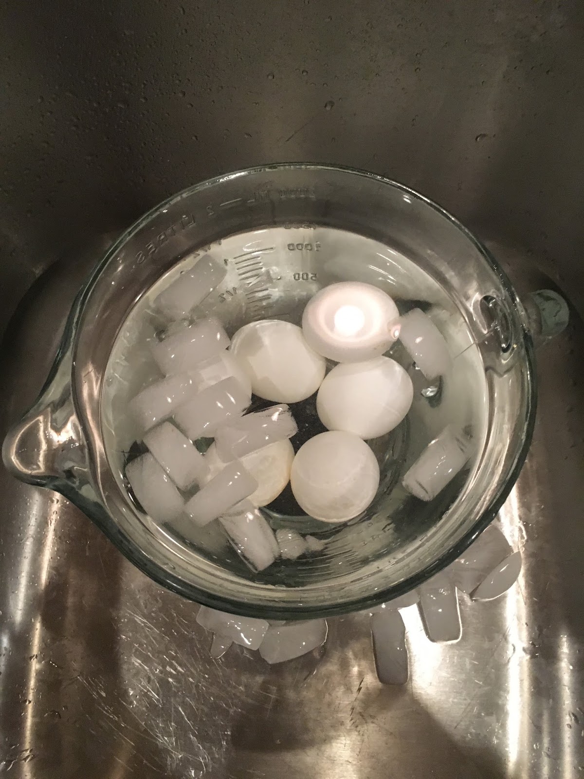 Put directly into a cold water bath (I added ice just to add a little cold kick.)