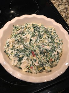 Dips truly make my world go round. I’m up for any kind of dip and love making them and trying new recipes. Spinach Artichoke Dip is a classic but I’m trying to put a lighter spin on it using some greek yogurt instead of just mayo and sour cream and I cut back on the cheese. Hope you enjoy!