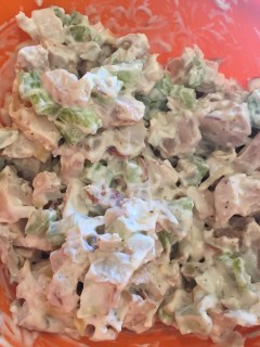 Here’s a take 2 on the rotisserie chicken. I made the wraps for lunch on Sunday after getting home from the grocery store in a hurry and then in the afternoon I made this chicken salad to have to take for lunches.