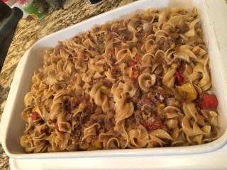 Ok… now that I’m in the details… I did do something different that I think would be great to try next time and that is to add 1 cup chopped pimiento stuffed olives. In it’s place I added some diced yellow pepper we had on-hand.