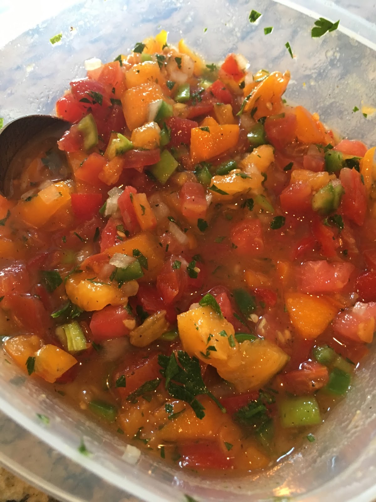 I love the fresh ingredients that start pouring from our gardens this time of year. Let the healthy feasting begin! Today I have a fresh salsa recipe to share that feels extra special because the tomatoes come from Mark’s Uncle Roger’s garden. His garden is truly beautiful and tomatoes are definitely flourishing.