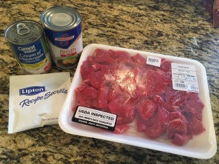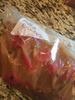 Dump all ingredients except the meat into a labeled freezer bag, seal and mix up. Add stew meat once sauce ingredients are mixed well.