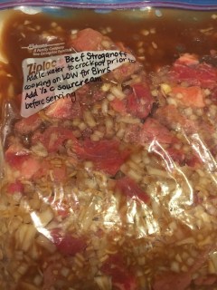 Extra directions for cook day: Add 1 cup water to slow cooker before cooking. Stir in 1/2 cup sour cream before serving (do not add freeze with other ingredients or add at beginning of cooking time or it will curdle)