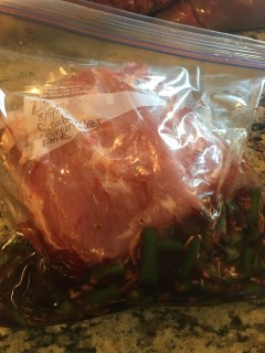 Dump all ingredients except the meat into a labeled freezer bag, seal and mix up. Add chicken breast once sauce ingredients are mixed well.