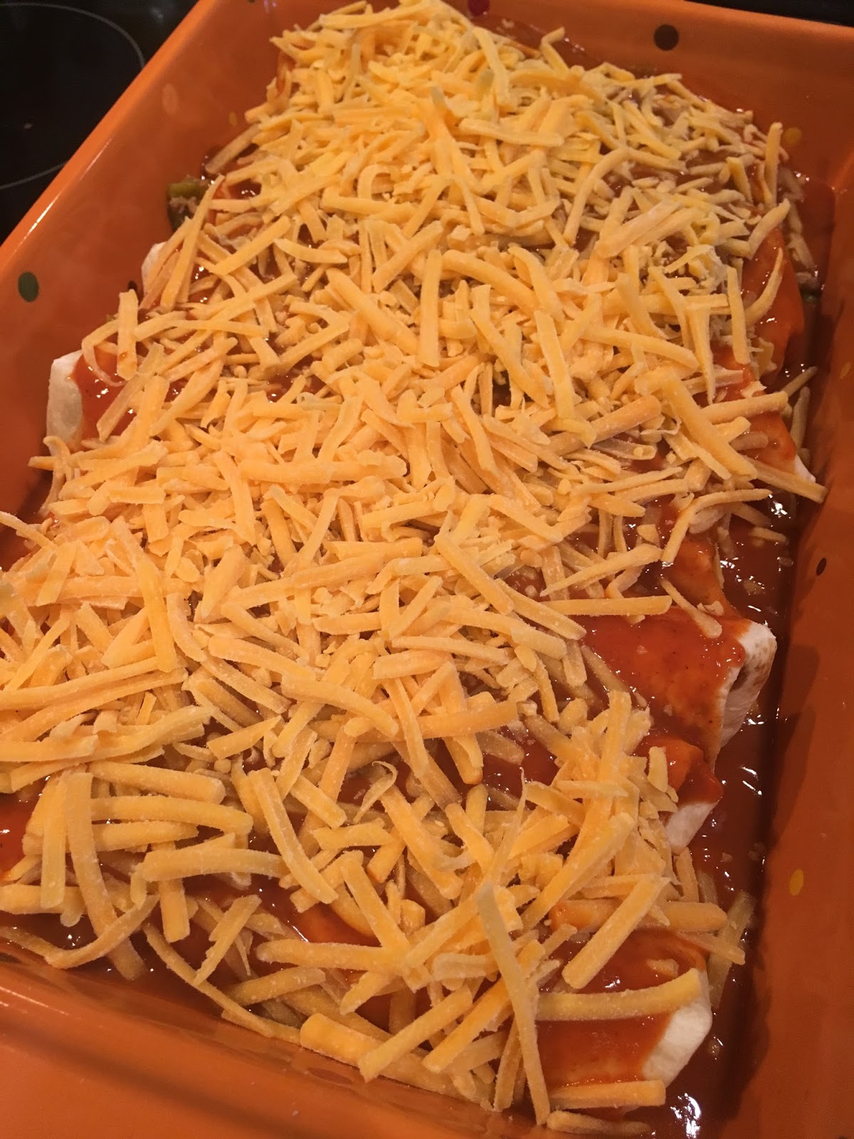 Pour the sauce over the top and add as much or as little cheese as you would like. We dove in head first with our cheese!
