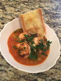 I’ve made many spins on this dish in the past. A couple things we did this time that I really liked was grilling the shrimp separate to put on top of the pasta and sauce. You can also toss the shrimp in the simmering sauce but you run the risk of whatever doesn’t get plated right away for dinner having overcooked shrimp. Another way to get even more flavor into your pasta would be to add more stock to the simmering sauce and cook your pasta directly in it.