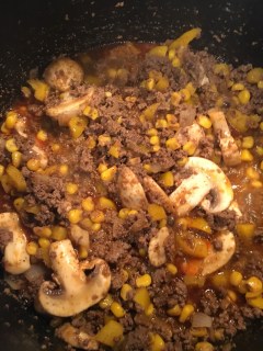 On a day where I bulk cook ground beef we generally have something with ground beef for dinner. This helps it be double duty for the freezer and for our dinner meal.