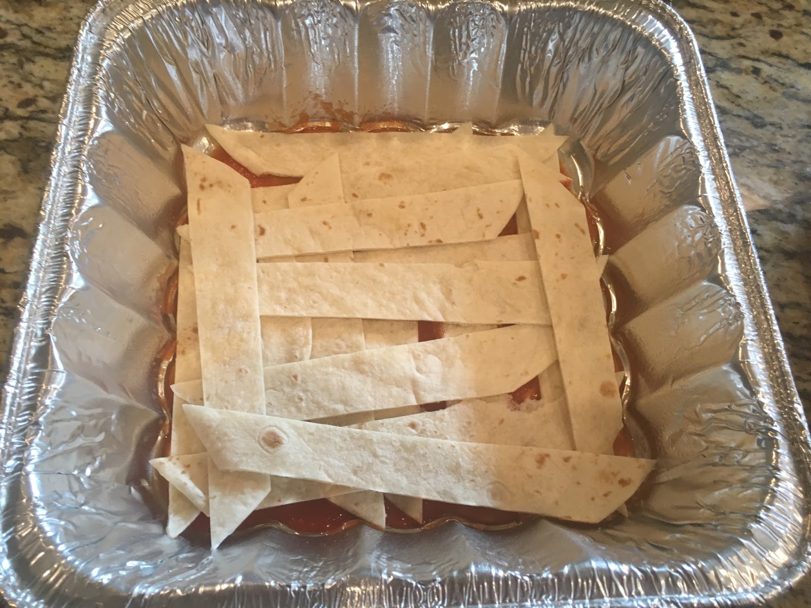 We made two 8×8 casseroles. One to bake tonight and one in a foil tin to freeze.