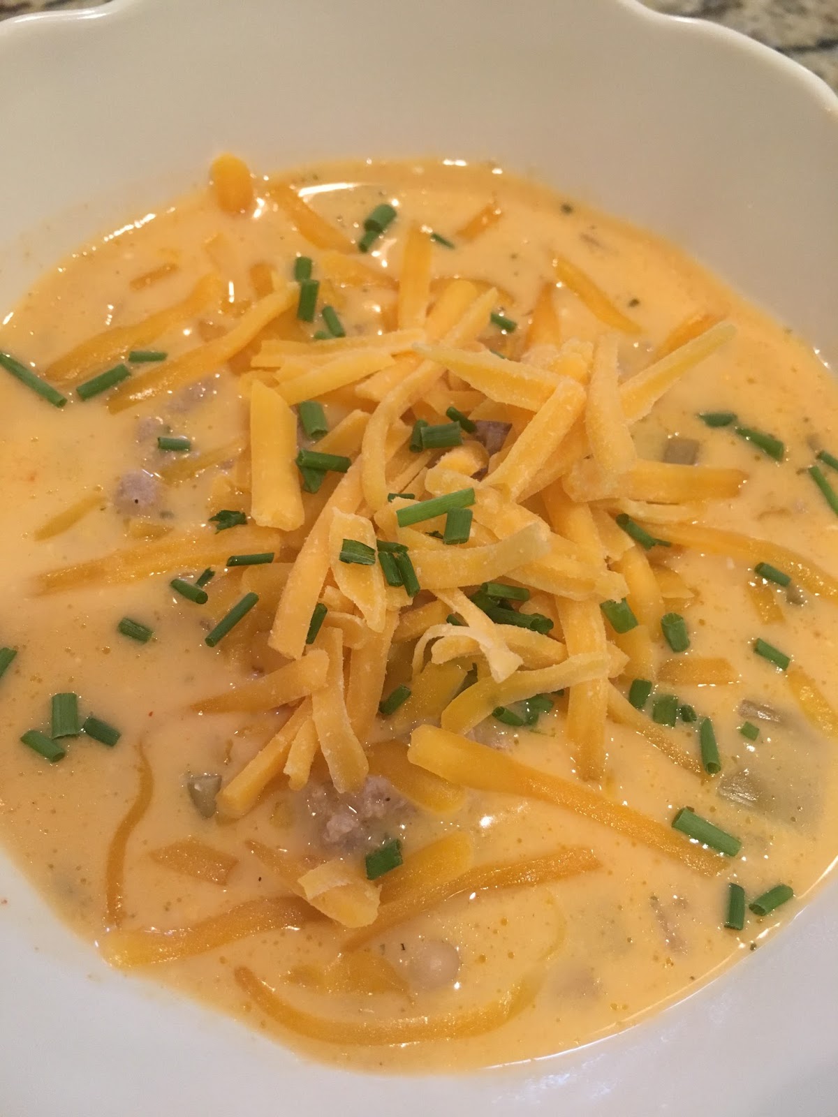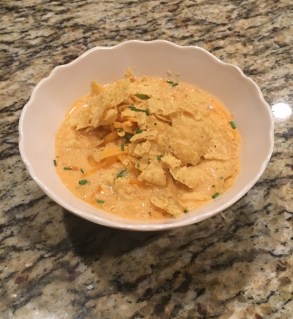 I initially topped mine with shredded cheddar cheese and chives. It really needed a crunch factor so I added some crushed tortilla chips.