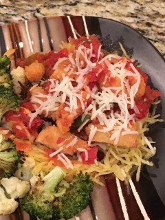 Rather than using pasta for myself – I microwaved spaghetti squash.
