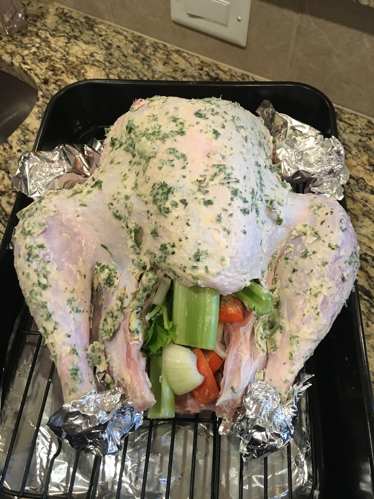 Mix all together well and cover the skin of the turkey. I like to lift the skin from the breasts and put some under the skin between the meat and the skin.