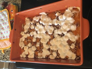 There’s also mention of adding egg or egg whites. I didn’t do either of those things either…. I thought it sounded weird. If you’re a “must have eggs in my sweet potato casserole” person – 4 large egg whites or 2 large whole eggs were added and mixed in after the sweet potatoes were mashed and added with the yogurt mixture.