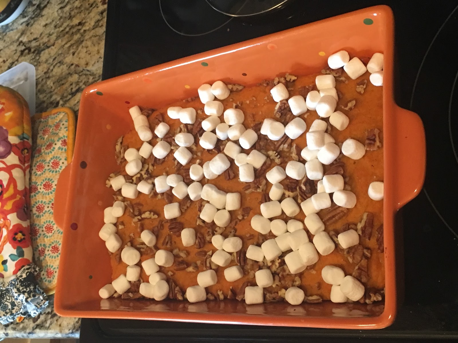 Once the sweet potatoes are done and mashed, add them to the yogurt mixture and mix well. There were optional ingredients for a pinch of salt and brown sugar. I didn’t add either of those because it felt sweet enough to me knowing that some marshmallows were also going to be thrown into the party soon.