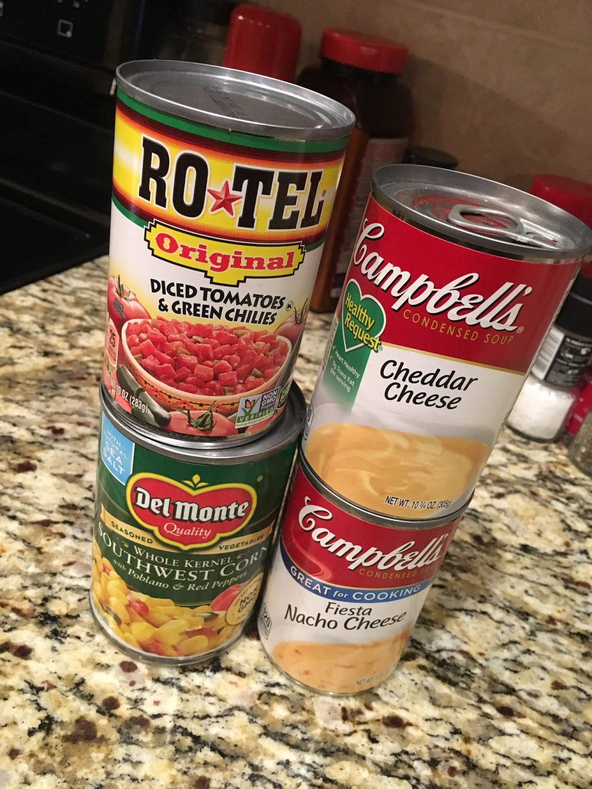 1 can Southwestern Corn with the colored peppers included (I like the del monte brand because it’s a bigger can than the other smaller brands)