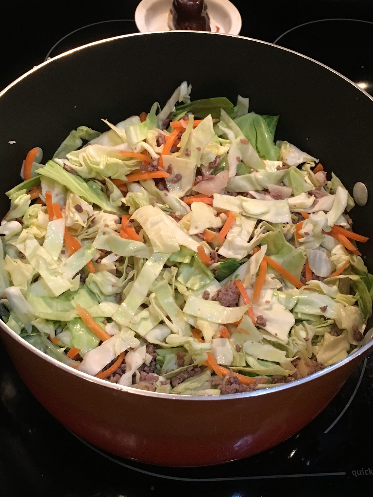 There are different recipes going around using the Instant Pot. I didn’t want to do that for my first try at this recipe because I wanted to make sure the cabbage still held some texture and I didn’t want the carrots to get over cooked too. This recipe is generally from TipHero.com.