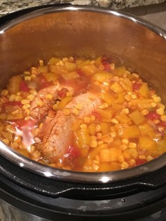 I didn’t cook it any longer because the corn thawed and warmed up in the time it took for me to pull the chicken out, shred it and toss it back in.