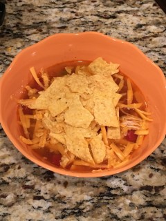 Chicken tortilla soup is probably one of my favorites because it has the mexican flavors that I love and you can so easily spice up individual bowls to make each person eating it a happy camper. I’m also all about toppings and the possibilities are pretty much endless. We didn’t get too fancy on this day but I also really like to add slices of avocado and twists of lime. The lime adds a level of brightness to the soup and gives it the little extra something that makes me not miss the extra salt.