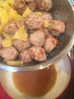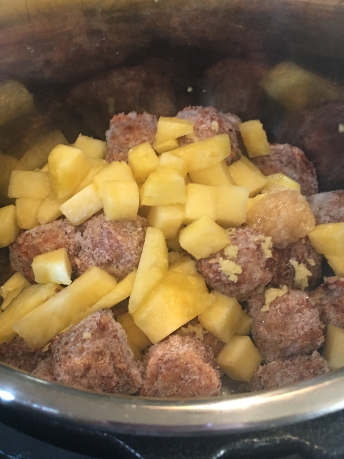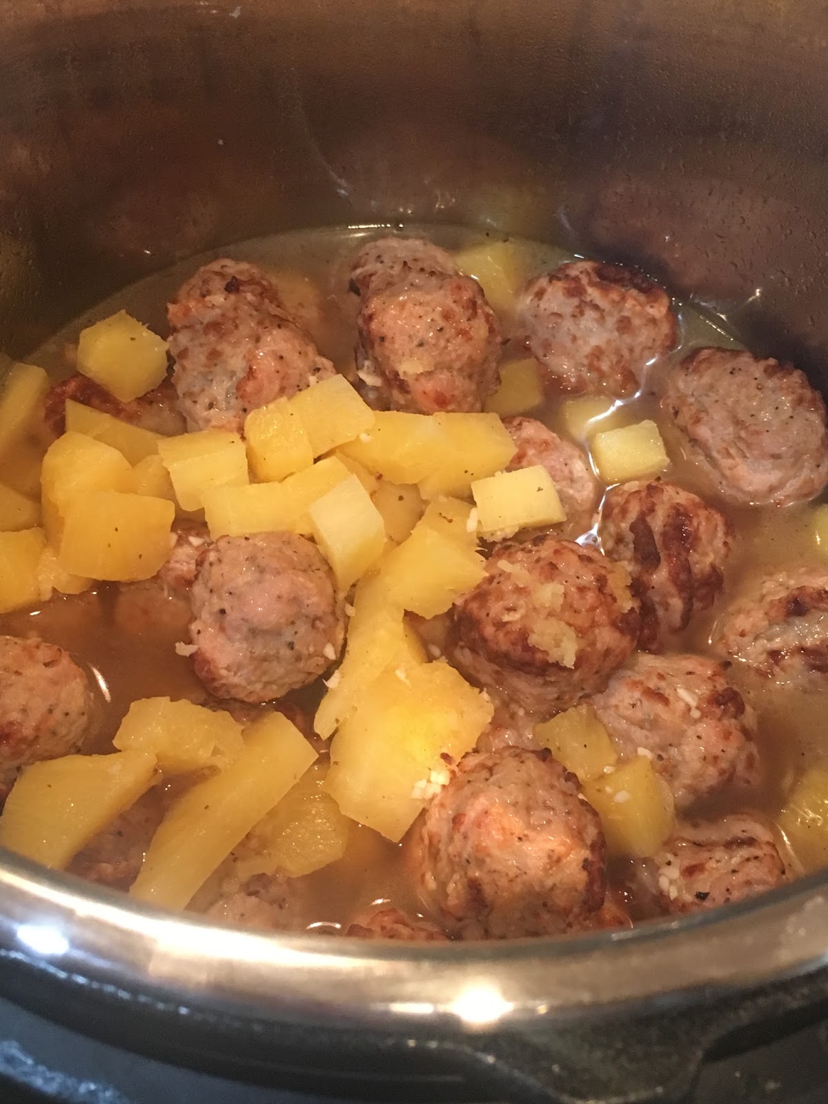 After the sauce is thickened – turn the Instant Pot off and add the meatballs and pineapple back to it.