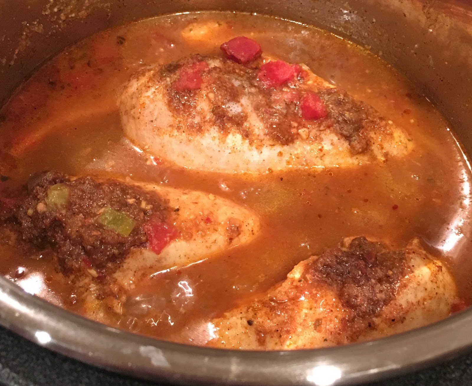 As a result we get tasty sauce that’s thickened up some on its own. The chicken breasts also didn’t have dry spots since they were redistributed in the liquid towards the end of the cooking process.
