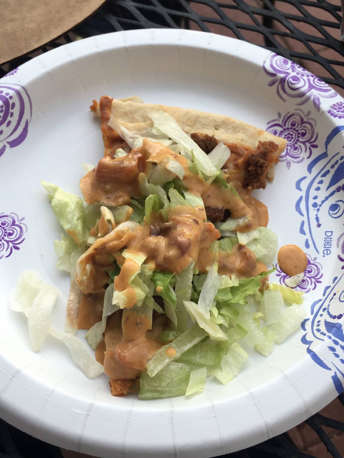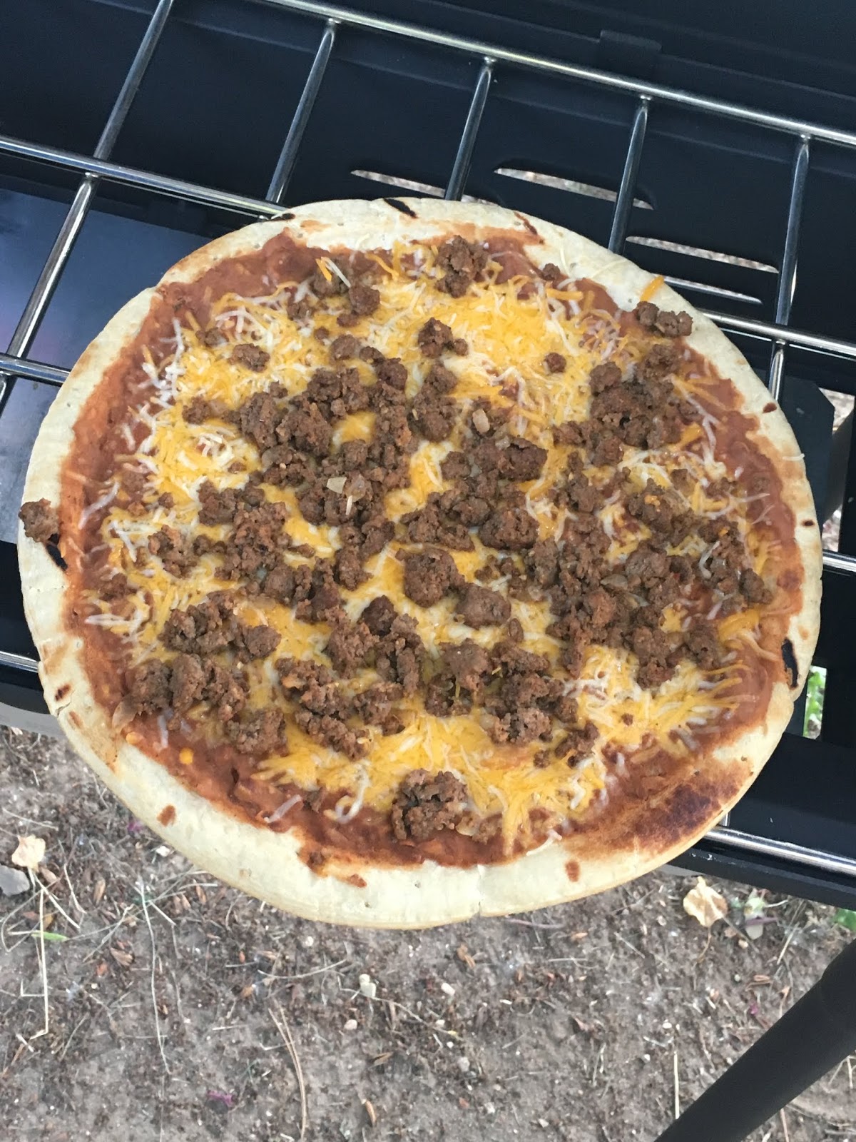 We had leftover taco meat from our walking tacos at lunch and I had planned grilled pizzas for dinner, so I put the two together. There’s a quick cheese sauce on top that was so easy and added lots of flavor! I threw on a couple crunched up chips after I took the picture and I really liked the crunch they added.