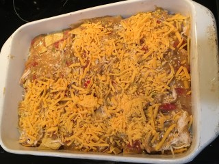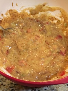 This is a lightened version from the original with only 329 calories per serving. This recipe makes 8 pretty good sized servings. The recipe comes from the Healthy Cooking Cookbook from Taste of Home. I followed the recipe list as it was listed to keep calories consistent.