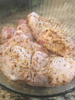 Season up the chicken like you are going to grill it and put it in the fridge for the afternoon so all the seasoning can do its magic.