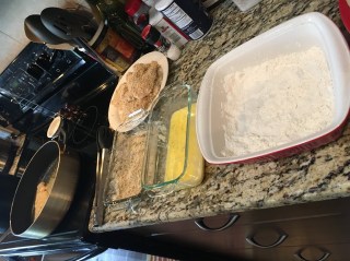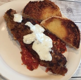 Chicken Parmesan is one of those comforting meals that when it’s done right… it’s amazing. We are using a recipe from Ree Drumond in her Come and Get It cookbook on page 158. We followed the idea pretty close. I soooooooo wish my pictures did this meal justice. It was really good and my husband cooked the chicken perfectly where it was still tender and juicy on the inside with the crispy panko crust.