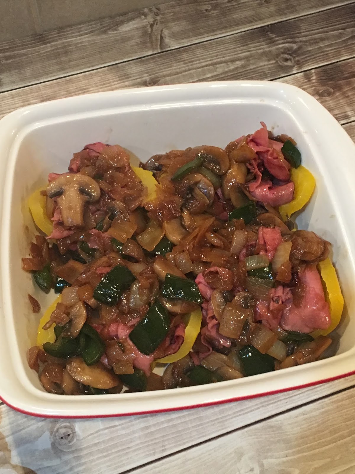 8 oz roast beef lunch meat (you don’t want to cook this for too long at this step because it’s also going to be in the oven for a while)