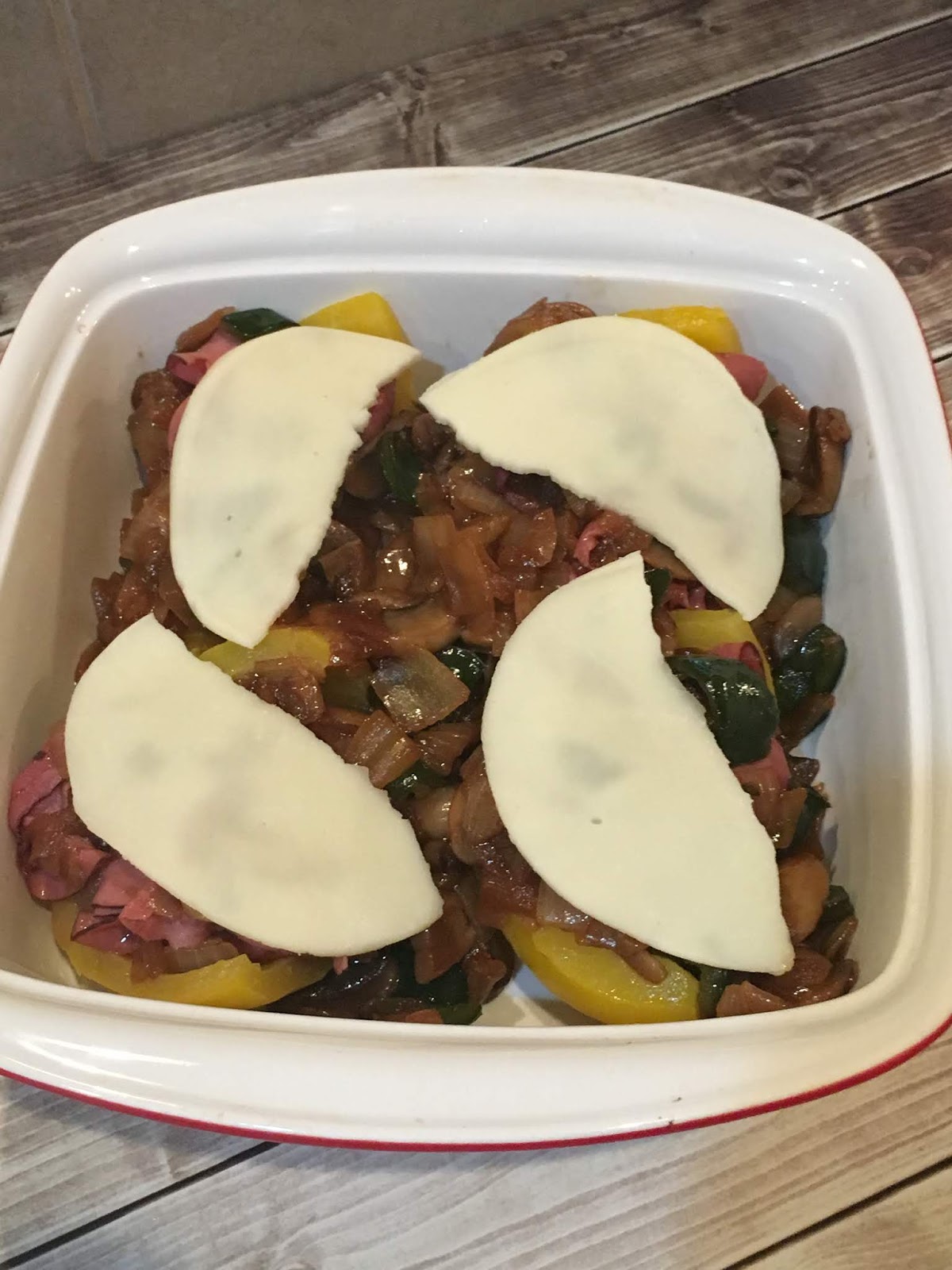 You’ll need 1 provolone cheese slice per 1/2 pepper. 1/2 for the bottom under the beef/veggies and then another 1/2 for the top. That layer of cheese under the beef and veggies melts into ooey gooey tastiness and makes it feel like I’m getting extra cheese.