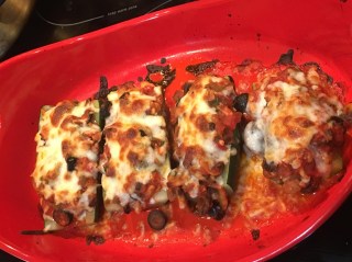 This helps to start the cooking process for the zucchini. It’s the same idea as a stuffed pepper and helps to cut done on the cooking time in the oven.