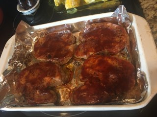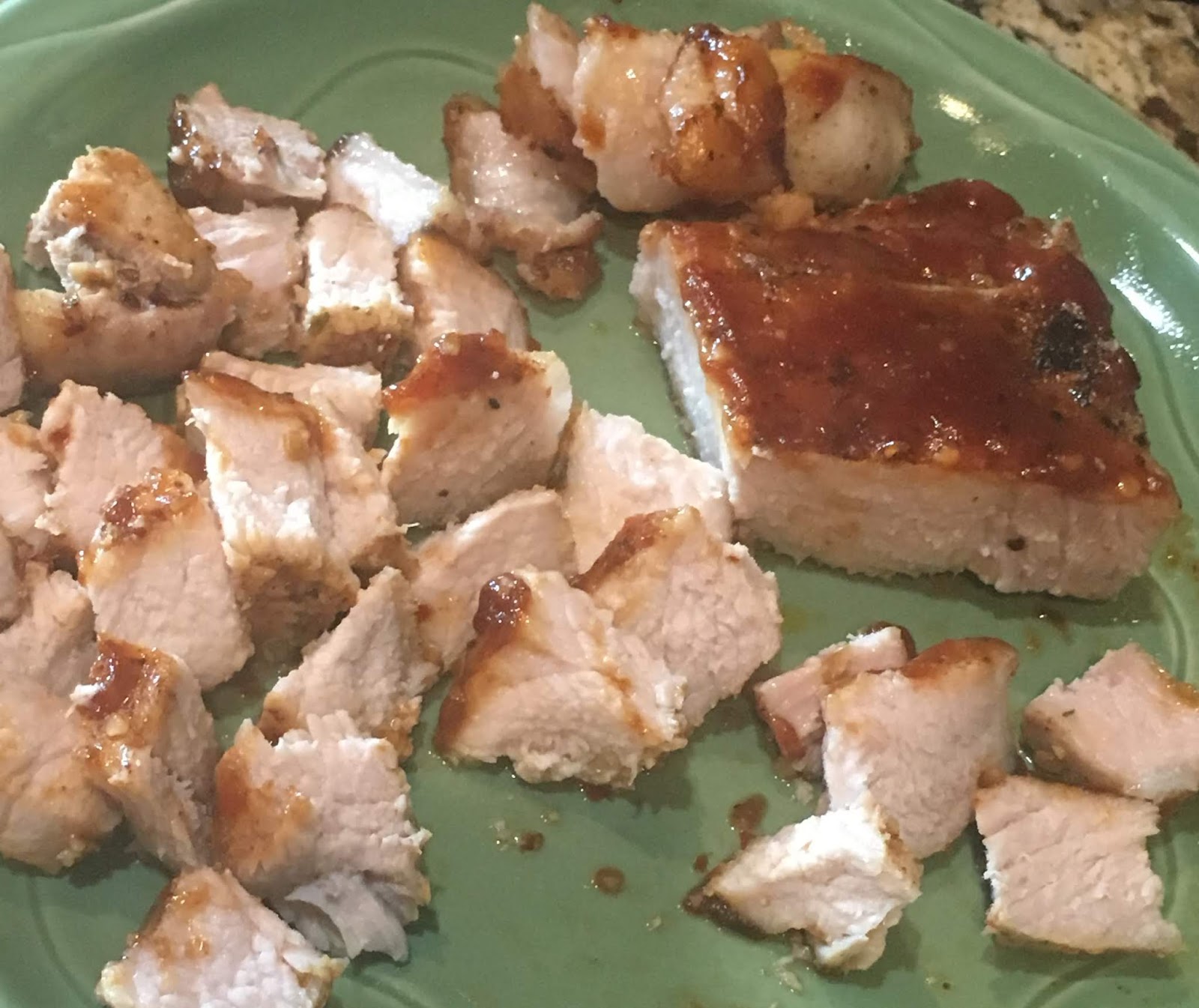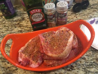 Using some EVOO and your favorite grilling seasoning… get the pork chops ready like you’re going to be throwing them on the grill. Let them hang out in the fridge for a few hours… if you have the time on the weekend. If not, just do a quick 15-20 minutes.