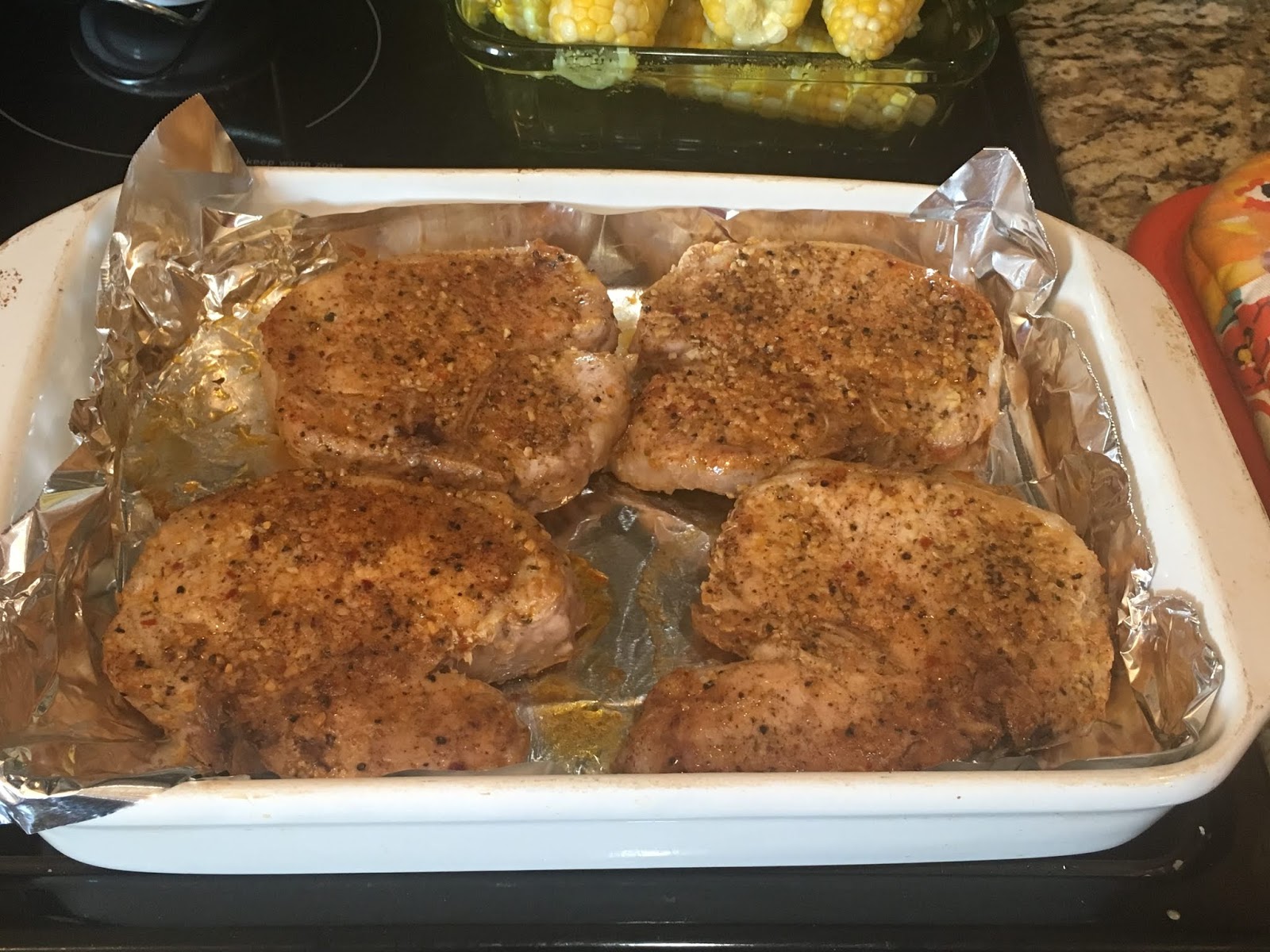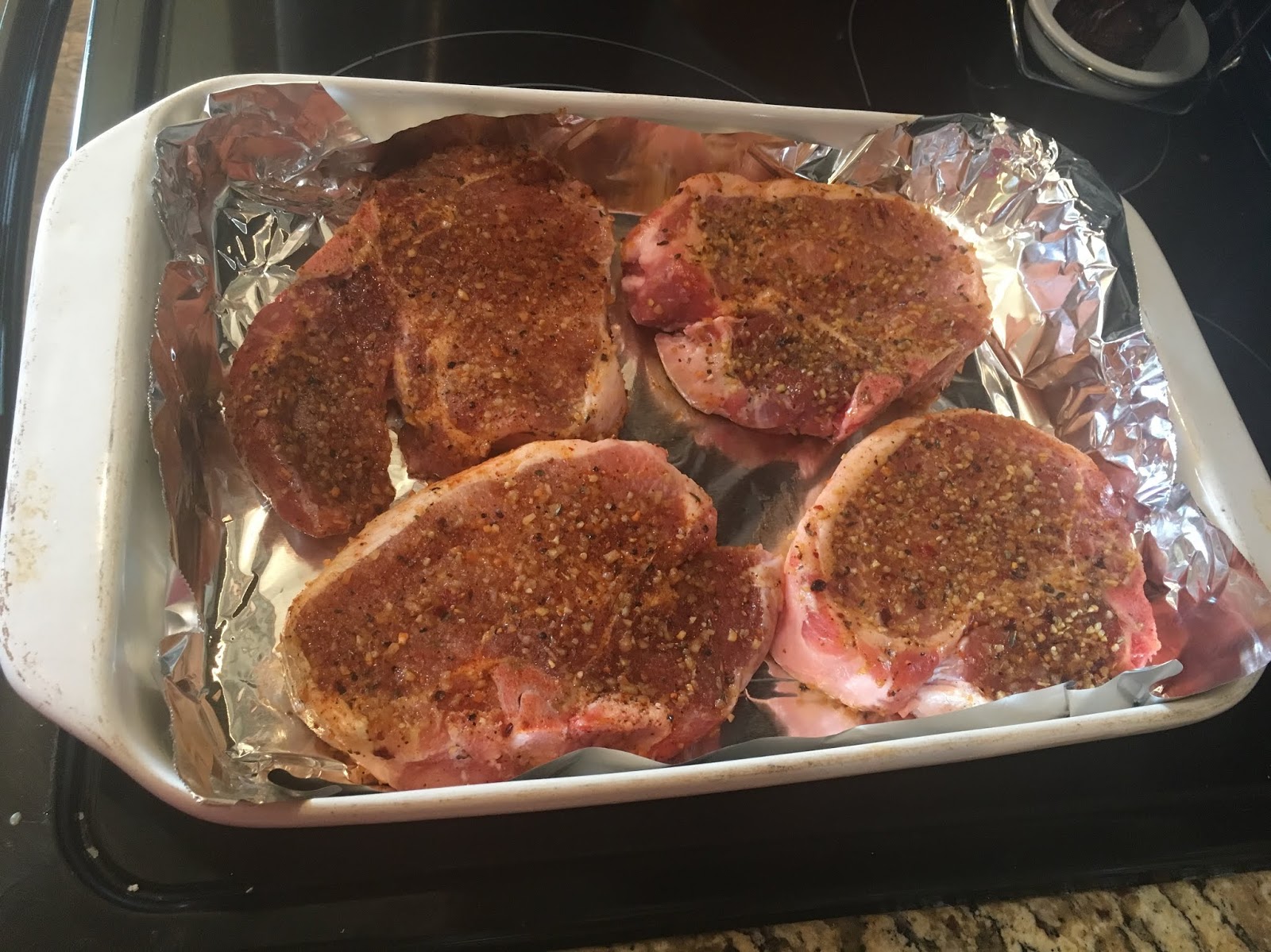 We’re going to bake these like we did the chicken legs/thighs a little while back. The chicken was so good that I wanted to give it a go with pork chops. We generally only use grill seasoning when we’re grilling, so it’s fun to try something new.