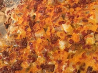 Adding the layers of cheesy, ranch-y, bacon-y deliciousness: