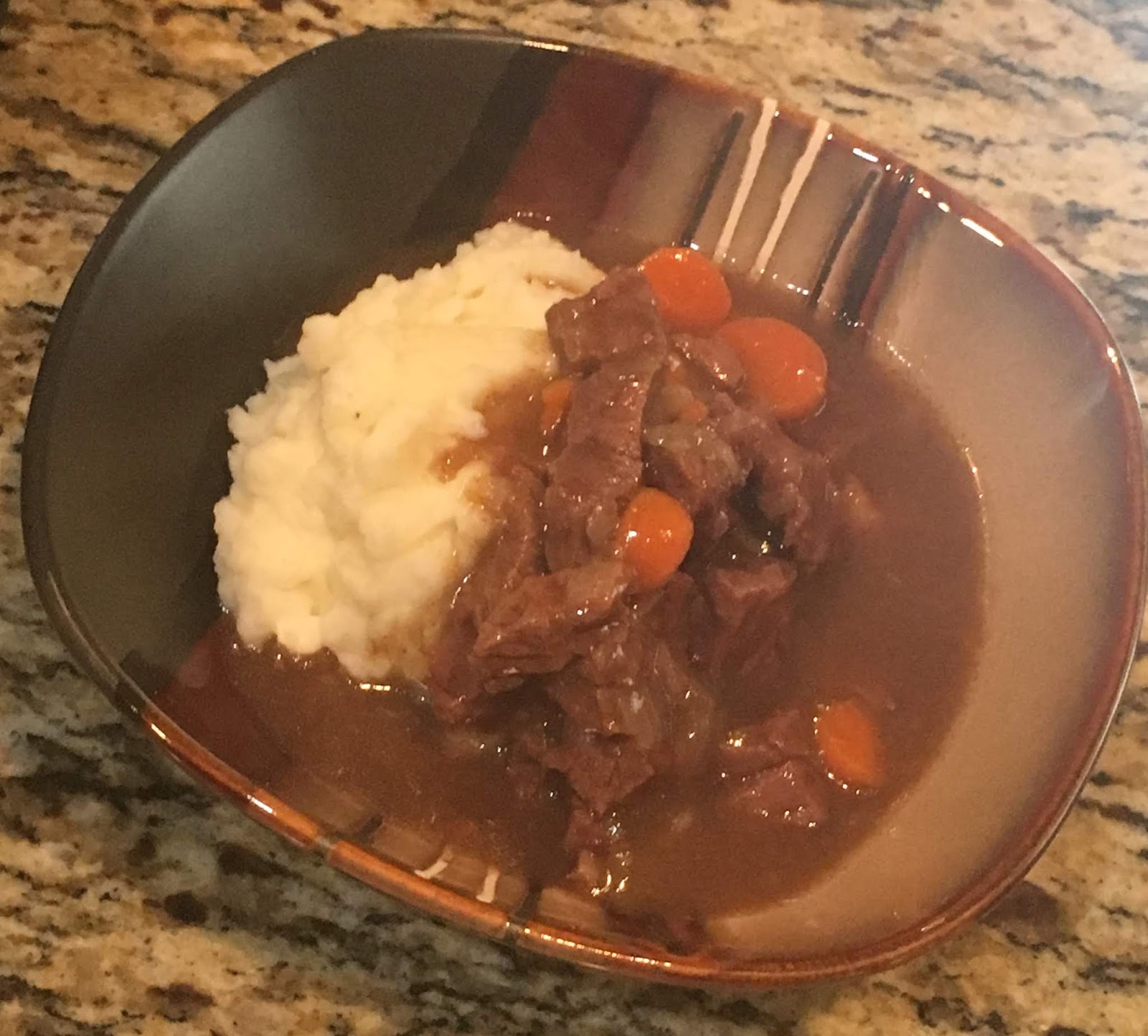 Fall is definitely in the air… with beautiful changing leaves and cooling weather. Times are busy with football practices and hectic schedules which makes satisfying comfort dinners even more important. This is one of those to me. The roots of this recipe is a stew but we made mashed potatoes rather than chopping up potatoes and cooking them with the meat. I love to get a lot of the thick sauce to make sure there’s enough for every bite of mashed potatoes.