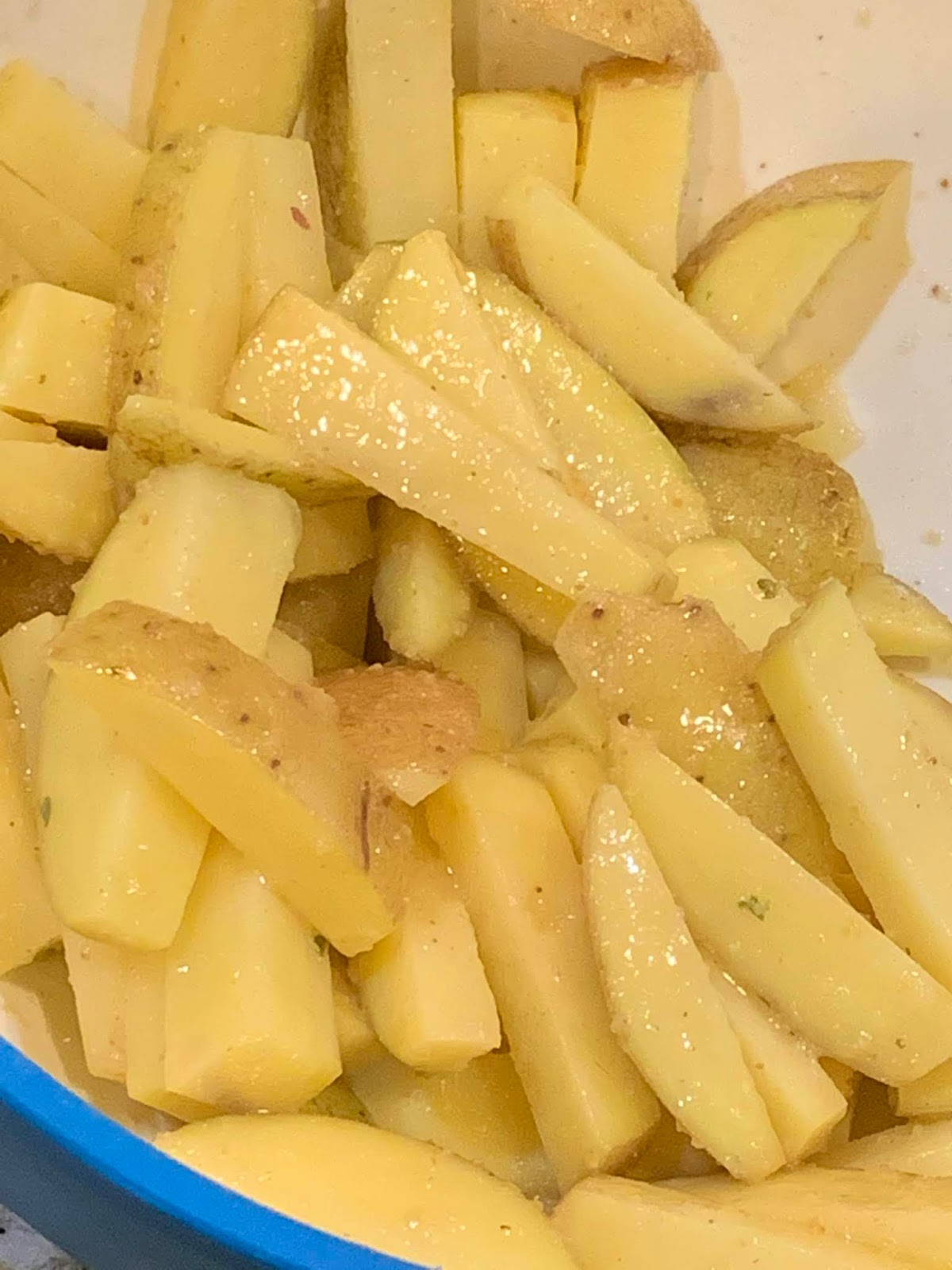 4 small russet potatoes, cut lengthwise in as even sized fries as you can