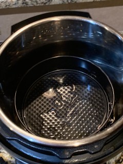 In the instant pot – put in your steamer base (mine came with the IP) and add at least a cup of water.