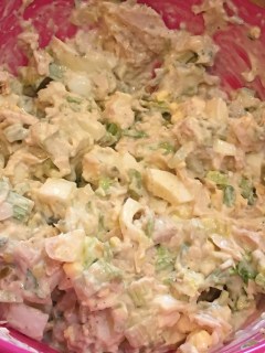 To make a perfect tuna salad sandwich you need to make sure you are using the large can of tun and not the smaller cans. That is how you get the nice sized tuna chunks like in the picture below. It’s also important to me that I have some hard-boiled egg and dice up some celery. Last – but definitely not least – be sure to allow the proper amount of chill time. You want that tuna salad to be nice and cold between a couple of perfectly toasted slices of bread.