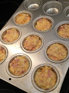 Divide the mixture between 9 muffin tins that have been sprayed with pam. The recipe said 12 muffins… but it felt like those muffins be too small.
