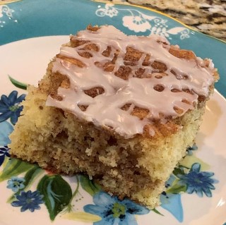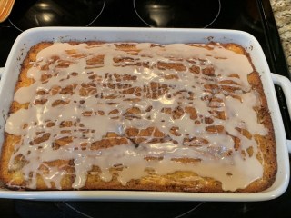 On this particular day… cinnamon rolls sounded so good but I didn’t have the time or energy to go through the whole process so I settled for something in the middle. This is a cake that has the flavors of cinnamon rolls and takes much less time. A couple months back I made something similar without the glaze on top and it was good… but the glaze really adds a lot.