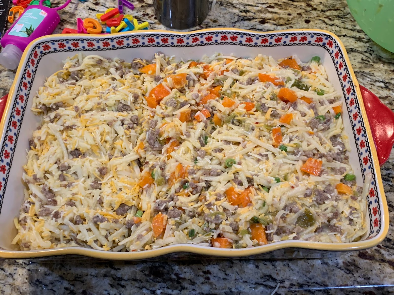 We haven’t had a breakfast casserole since Christmas morning! It felt like we were long overdue and while my husband and Connor are sneaking in some Fortnite time in the basement – I threw this together.