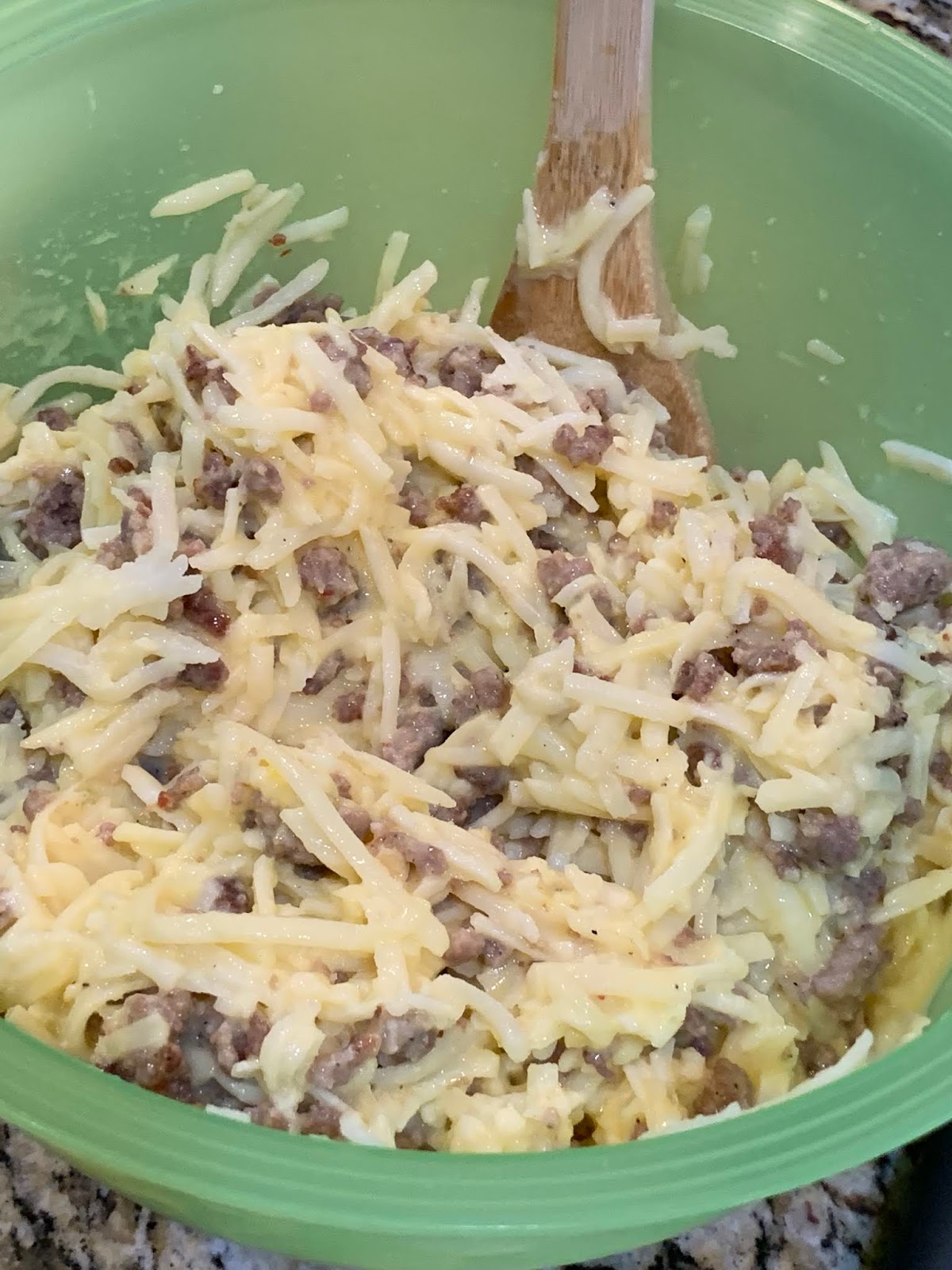 Thaw the hash browns some (I did 3 mins on defrost in the microwave)