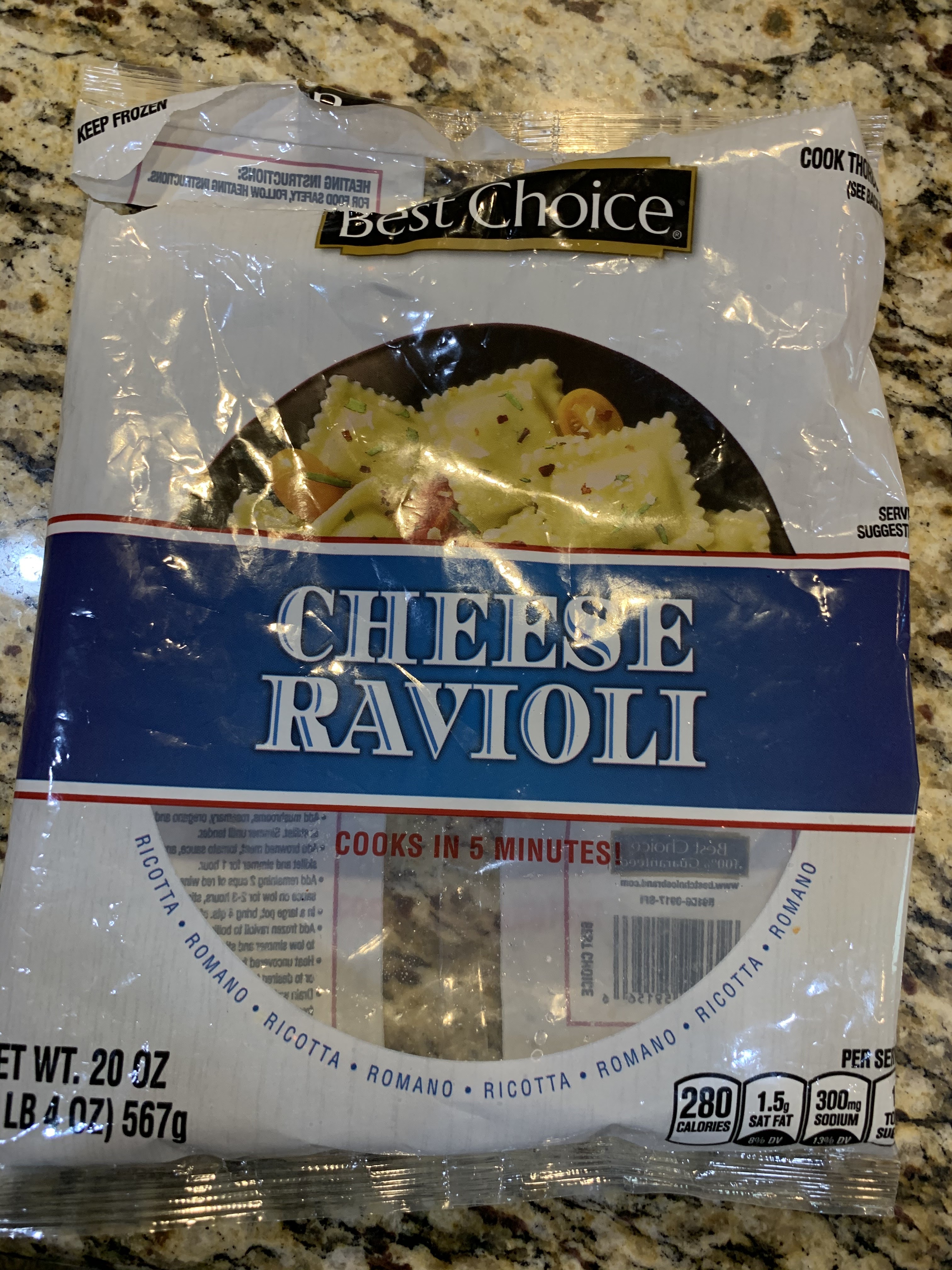 1 20 oz bag of cheese ravioli (or whatever flavor fits your fancy)