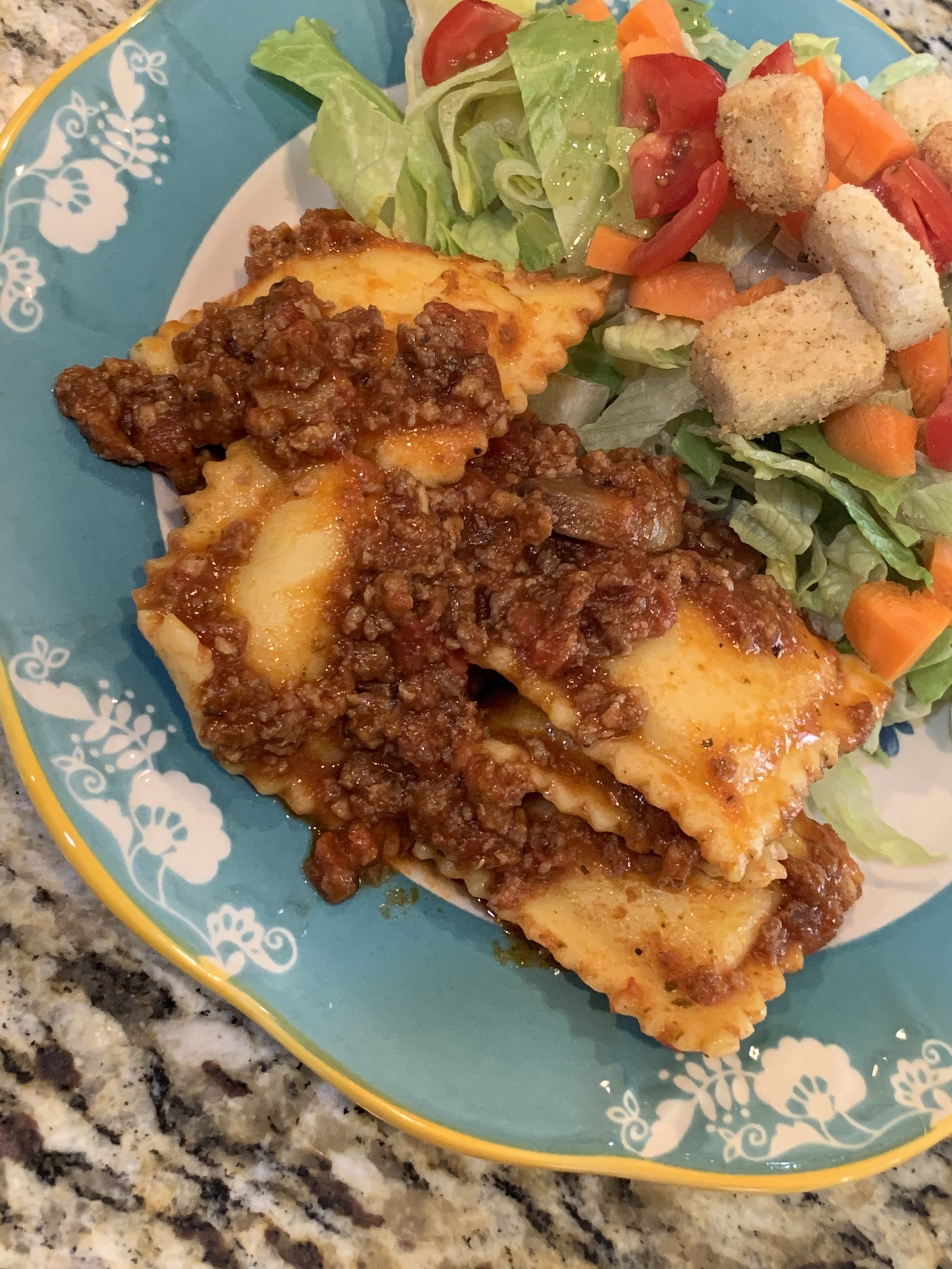 I’m always on the hunt for quick and easy dinners and this one definitely fits the bill. We don’t eat ravioli often here and I bought some because I wanted to try it in the air fryer. Well… I haven’t done that and came home last Friday night tired and wanting to make dinner fast with little effort.