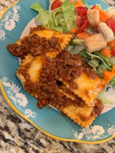 I know this is something we’ll definitely have again because not needing to boil the ravioli by itself makes this ridiculously easy.