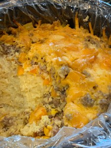 We made this as a part of the brunch we had back at our house to celebrate after Haley’s baptism. It worked out nicely that it could fit different diets. Some made breakfast tacos and some had it by itself.