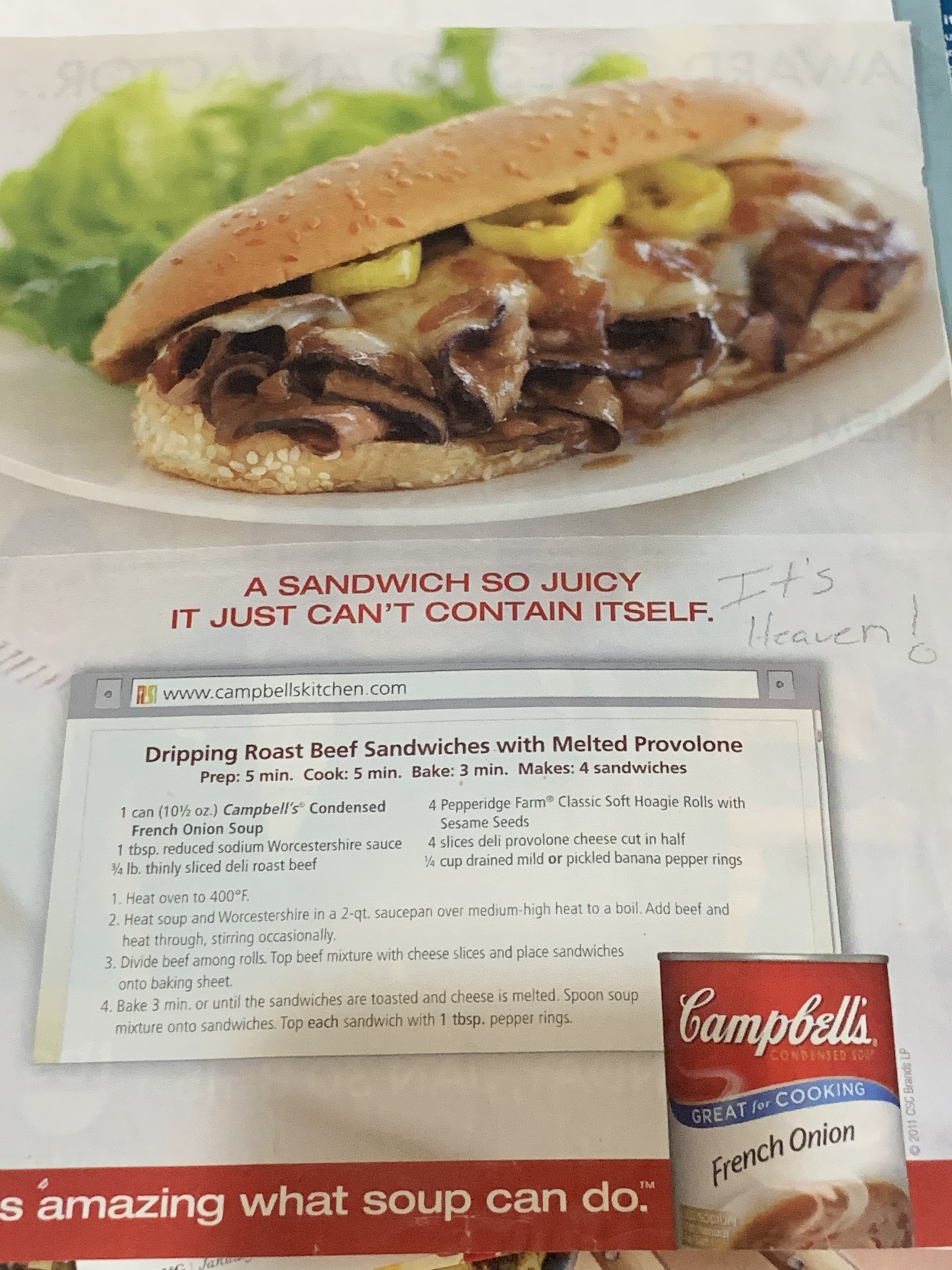 Over time we’ve played with the recipe in different ways but it seems important to share this one as it was written from Campbell’s in its original glory. It takes a little extra time – but I highly recommend separately toasting the rolls with garlic powder. It is oh so worth the extra time..