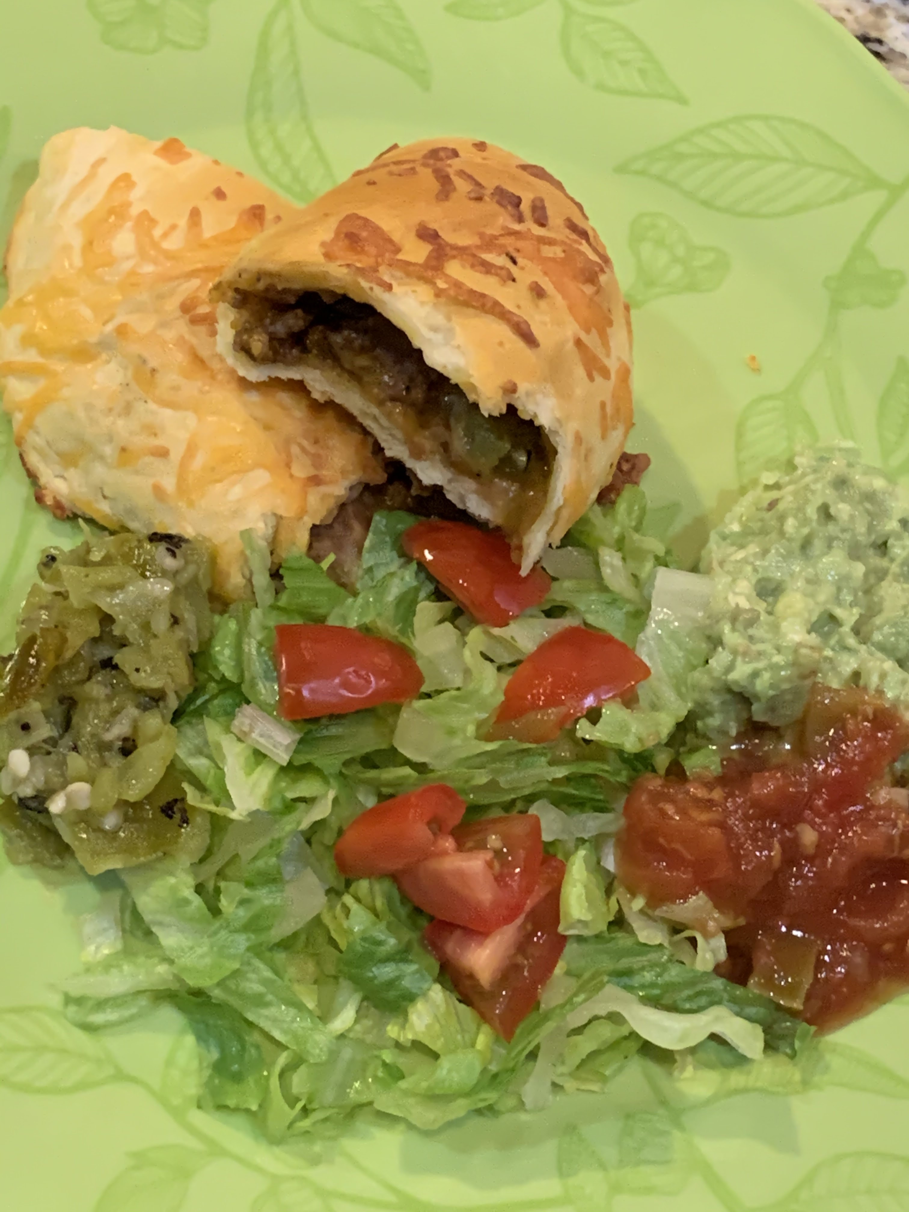It seems that sometimes my mission is to find something fun to make for dinner that avoids going to the grocery store. I tend to stock up on things like crescent rolls and canned biscuits when they are on sale because they make a quick and easy dinner later on – even if I’m not sure what that looks like when I buy them. This was a fun dinner to try.