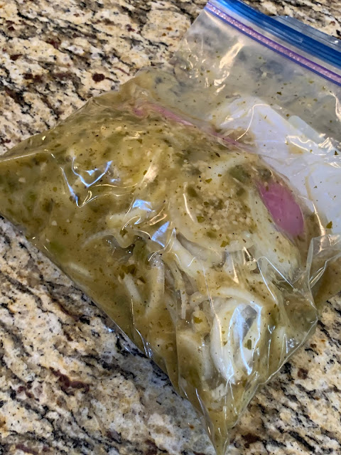 I doubled this recipe today and split it between two freezer bags to throw into the crockpot once school gets back up and running. I’ll cook it on low for 8 hours.